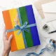 Vermelho, laranja, amarelo, verde, azul, índigo, violeta: as cores do arco-íris são apresentadas em faixas verticais nesse design. A sequência festiva do arco-íris se repete através da design. Imagem de pixel 8800 x 5200 criada digitalmente. Copyright ©2011 Claire E. Skinner, Todos os direitos reservados.
