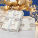 Fundo de marfim, um mocha, um texto castanho mudo e um arco. Feliz Natal é escrito com uma fonte de estilo retrô. Personalizar e adicionar um nome