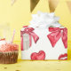 Este papel de embrulho de Dia de os namorados apresenta corações vermelhos, beijos e presentes de Namorados embrulhados com arcos vermelhos brilhantes. O presente perfeito para Dia de os namorados ou Natal.