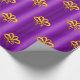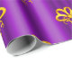 Um padrão festivo e colorido de arcos de ouro espalhados por uma púrpura metálica para adicionar um toque de elegância aos presentes de Natal deste ano.