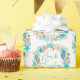 Férias costeiras, tropicais ou praias, tema de Natal, rolo de papel de embrulho com cavalos de água, estrelas, conchas e ornamentos acentuados com ícones falsos de brilho e as saudações SEAS & GREETINGS na tipografia moderna escrita à mão em turquesa, teal, ouro castanho e branco sobre a sua escolha de fundo (mostrada em turquesa clara). Altere o título excluindo o gráfico de título e adicione seu próprio texto em EDIT. ASSISTÊNCIA: Para obter ajuda com a modificação ou personalização do design, alteração de cor, redimensionamento, transferência do design para outro produto ou, se você quiser coordenar itens, entre em contato com o designer ANTES DE PEDIR através da guia MENSAGEM de bate-papo Zazzle abaixo ou envie um email para makeitaboutyoustore@gmail.com.