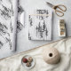 Este papel de embrulho festivo, aconchegante, apresenta silhuetas pintadas manualmente de pinheiros em madeira de fazenda branca falso. Copyright Anastasia Surridge para o Compro de Natal, todos os direitos reservados.