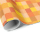 Este papel de envolvimento caracteriza quadrados em máscaras diferentes de alaranjado e de amarelo em um teste padrão pixelated.