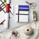 O papel de envolvimento da arte moderna de Mondrian tem uma seção como a composição 10 por Pieter Piet Mondrian em vermelho, azul, amarelo, preto e branco, melhor saber do grupo do movimento de arte de de Stijl que usou três cores preliminares com linhas pretas em um fundo branco