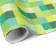 Este papel de envolvimento caracteriza quadrados em máscaras diferentes de verde e de amarelo em um teste padrão pixelated.