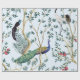 Árvore de fruta de romã de jardim vegetativo, pássaro exótico, fundo azul de padrão uniforme floral de pavão. Treino exótico desenhado à mão. chinoiserie,pavão,padrão,pássaro,desenhado à mão,fundo,selva,ilustração,floral,vintage,romã,tropical,botânica,grua,exótica,vintage,chinesa,árvore,animal,fruta,vintage,retrô,ilustração,desenhado à mão,caneta de tinta,