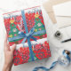 Papel De Presente Árvore de Natal de Férias Vermelhas com Ornamentos