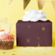 Árvore de natal de brilho ouro, primavera de natal, lua, estrelas em vermelho escuro em papel de embrulho. Você deve saber que consegue uma foto!