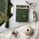 Árvore de natal de brilho ouro, primavera de natal, lua, estrelas em verde escuro em papel de embrulho. Você deve saber que consegue uma foto!