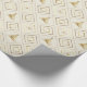Papel de embrulho de férias moderno e elegante, com árvores de Natal estilizadas em ouro, padrão geométrico e fundo de marfim mole.