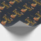 Papel De Presente Árvore de Natal Dourada e Azul Escuro Personalizad