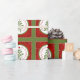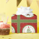 Árvore de Natal bonita com papel de embrulhamento de borda de feriado vermelho, adicione seus nomes e saudações de época