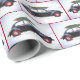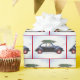 Um recuperador de ouros em um carro preto velho em arco com uma árvore de Natal.
