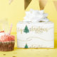 Enrole seus presentes de Natal com presentes festivos que tem a saudação MERRY CHRISTMAS em tipografia moderna e elegante de escrita de caligrafia em ouro acentuado com uma árvore de aquarela com uma estrela de ouro sobre fundo branco. Entre em contato com o designer ANTES DE PEDIR por meio do Zazzle Chat ou makeitaboutyoustore@gmail.com para obter modificações no design, assistência para personalizar ou transferir o design para outro produto ou gostaria de coordenar itens.