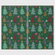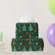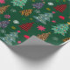 Retrô bonito e divertido, cor-de-rosa brilhante e verde, impressão animal e búfalos cheque papel de embalagem da árvore de Natal.