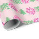 Papel De Presente Árvore de Natal Rosa e Verde, Holly Wreath