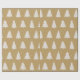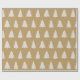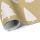 Este papel de embrulho de Natal apresenta silhuetas de pinheiros brancos e pequenos flocos de neve brancos sobre um fundo elegante de ouro.