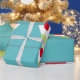 Mude seus desejos de Natal com esta design de Natal moderna. Ainda usando as cores sazonais tradicionais, esse design usa branco, verde e azul-vermelho. A árvore azul tem decorações penduradas nela. Natal moderno e simples.