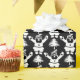 Este giro de papel de embrulho de Natal preto e branco, apresenta uma árvore de Natal esbranquiçada e um padrão de Papai Noel.