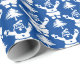 Este giro de papel de embrulho de Natal branco e azul-marinho, apresenta uma árvore de Natal esbranquiçada e um padrão de Papai Noel.