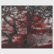 Espetacular floração de cereja vermelha a partir de um carvalho velho