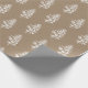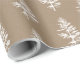Papel de embalagem de Natal Kraft para os feriados que inclui uma árvore de borra branca em madeira, num padrão repetido em papel de embalagem de cor kraft.