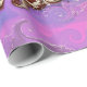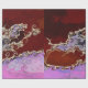 Uma árvore alterada digitalmente se inclinou em direção ao chão. Com o céu de marrom e a grama lilás e rosa.