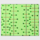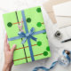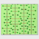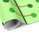 Este papel de embrulho tem uma design moderna do século médio de linhas verticais pretas com linhas verticais castanhas e círculos verdes.