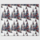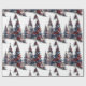 Estrelas brancas e azuis vermelhas e listram árvores de Natal patrióticas no padrão de neve para as festas e presentes deste ano no Feriado. Padrão sem costura para enrolar até os maiores presentes de Natal sem interromper o cenário - bom para pacotes de médio a menor O design é de 6 polegadas por 6 polegadas -