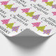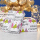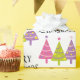 Com este lindo e caprichoso design de plástico de presente que apresenta um bonito padrão de árvore rosa, roxo e verde com texto preto "Feliz Natal" sobre fundo branco, você pode embrulhar seus presentes de Natal para a temporada de festas de uma forma especial.
