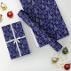 Papel De Presente Árvores de Natal Brilhantes Estrelas Azul Real