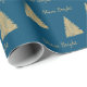 Papel De Presente Árvores de Natal Douradas e Azuis