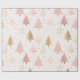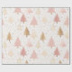 Papel De Presente Árvores de Natal Douradas e rosa macio