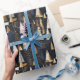 Este papel elegante e elegante de embrulho apresenta formas geométricas de árvores de Natal modernas em ouro metálico e tons prateados contra fundo preto profundo. A abstrato e a design minimalista traz uma sensação sofisticada e luxuosa à sua embalagem de férias, perfeita para aqueles que preferem uma tomada contemporânea da decoração tradicional de Natal. Ideal para o empacotamento de presentes em escala superior, este design irá adicionar um toque de elegância e charme a qualquer presente de feriado.
