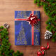 Papel De Presente Árvores de Natal Douradas modernas sobre a Seda Az