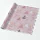 Papel De Presente Árvores de Natal Doves Flocos de Neve Rosa Natal