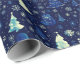 Papel De Presente Árvores de Natal Flocos de Neve Azul Natal
