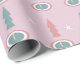 Papel De Presente Árvores de Natal Flocos de Neve Rosa