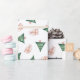 Papel de embrulho de Natal moderno, com árvores de Natal e presentes.
