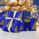 Papel De Presente Árvores de Natal ouro em Azul