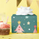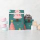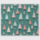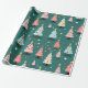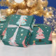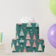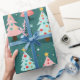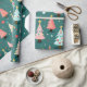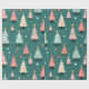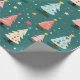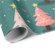 As cores divertidas decoram lindas árvores de Natal que desfilam sobre este papel de embrulho de coração leve. Um fundo verde azul-escuro repousa atrás das coloridas árvores festivas, cor-de-rosa, azul-claro, e com estrelas amarelas e baubles multicoloridos. Estes são de um padrão de aquarela retrorreflector.