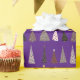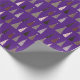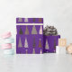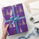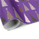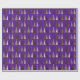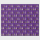 Este papel de embrulho de presente para as férias tem um padrão de árvores de Natal num fundo roxo.