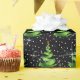Fita verde contemporânea Árvores de Natal com estrelas vermelhas e faíscas de brilho branco no padrão de pontos pretos e brancos.