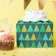 Um padrão perfeito para todos os presentes de Natal e feriados. Este padrão festivo de Natal é uma ilustração adorável de árvores de Natal geométricas triangulares em estilo retrô. Em cores de verdes vibrantes e chaleiras em um fundo verde-nevado escuro. Este ousado padrão retrógrado de árvore de Natal certamente ficará colorido e festivo sob sua árvore de Natal. Dê aos seus presentes de Natal um pouco mais de pizzaz nesta temporada de férias e faça o lado de fora parecer tão bonito quanto o que é dentro.
