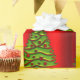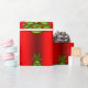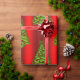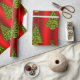 Um bonito e colorido embrulho de Natal com um padrão de árvores verdes de Natal sobre um fundo vermelho metálico vívido, que adiciona um salto de cor e estilo festivo ao embrulho de seu presente nesta temporada de festas.