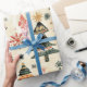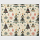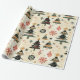 Papel De Presente Árvores de Natal Verdes Vermelhos do Creme