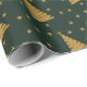 Papel De Presente Árvores e Estrelas Douradas de Glitter Verde Emera