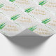 Este papel de embrulho de presente de Natal apresenta um gráfico de três árvores de Natal decoradas, altas e esbranquiçadas, sobre um fundo de bronzeado/cinza acentuado com um padrão de flocos de neve. Texto personalizável Dourado e verde: Feliz Natal de (SEU NOME).