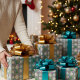 Papel De Presente Árvores E Ornamentos De Natal Desenhados Em Prata