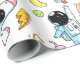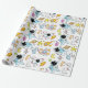 Embalagem de presente de astronauta de aquarelas bonitas para bebês apresentando, astronauta, nave espacial, planetas e outros itens de viagem de espaço.